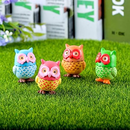 Colorful Owls Miniature Figurine Mini Christmas Figures Home Decoration Kawaii Fairy Garden Ornaments Resin Craft Kids Toys Amazon Co Uk Kitchen Home
