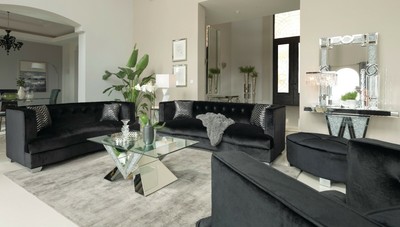 Sleek Black Velvet Sofa Loveseat Living Room Furniture Set Ebay