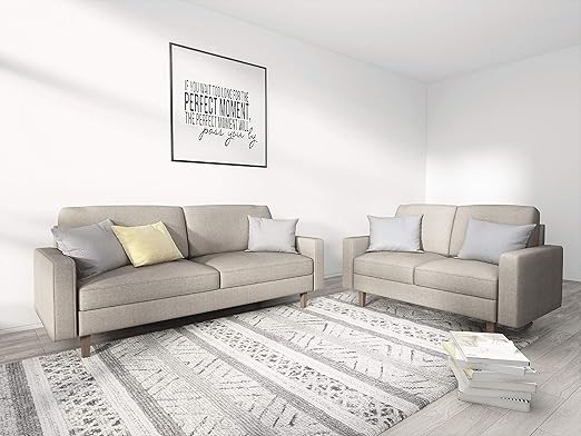 Amazon Com Container Furniture Direct Squared Mid Century Modern Upholstered 2 Piece Living Room Sofa Set Beige Furniture Decor